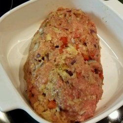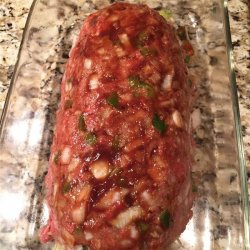 3Place the mixture into the prepared loaf pan and shape into a loaf. Brush the top with the remaining steak sauce.