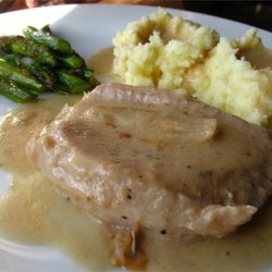 "These pork chops will melt in your mouth. They are very good and easy to assemble. They are first sauteed in butter, then baked in a creamy mushroom sauce."
