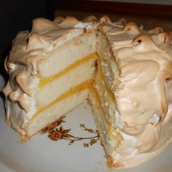 5To fill and decorate, lay a cake layer onto an oven-safe plate, and spread half the lemon filling over the bottom layer. Place a second layer gently on the lemon filling, and spread the rest of the filling on the top of the second layer. Top with third layer.