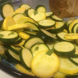 Drizzle zucchini and yellow squash with olive oil and lemon juice and sprinkle with mint; season with black pepper.