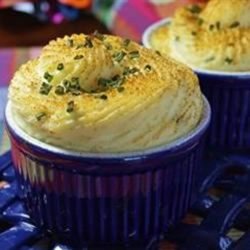 "A new twist for mashed potatoes. I usually add a dash of onion and garlic powder. I also do a taste test prior to baking to see if they need more salt. Potatoes are combined with cream cheese, sour cream, chives, butter, and paprika...Delicious!!"