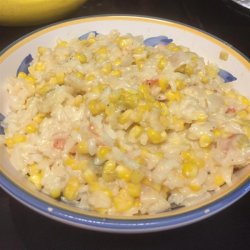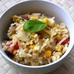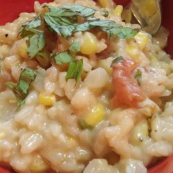 "This risotto dish is best suited for the end of summer when the tomatoes and corn are at their best. Using milk in the risotto dish gives it a lovely richness and creaminess."
