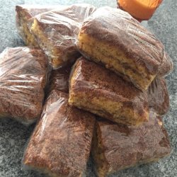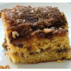2In a medium bowl, stir together the cake mix, vanilla pudding mix, and butterscotch pudding mix. Add the eggs, oil and water, mix until well blended. In another bowl, stir together the brown sugar, cinnamon and nuts. Pour half of the batter into the pan, spread evenly. Sprinkle with half of the nut mixture. Cover with the rest of the batter, and sprinkle with the rest of the nut mixture.