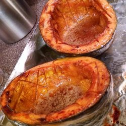 5Remove the squash from the oven. Pour out any liquid that may have collected in the squash. Brush the glaze over each squash half. Return to the oven until tender, about 20 more minutes. Spoon any glaze that has collected at the bottom of the squash over the edges of the squash. Season with additional salt, if desired.