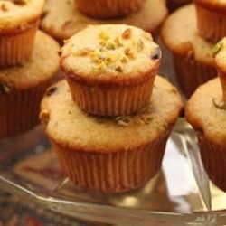 2Combine the eggs and sugar in a large heatproof bowl and set on top of a pan of simmering water. Beat constantly with a whisk or electric mixer until thick and pale, about 8 minutes. Remove from the heat and continue to beat until cooled, about 10 minutes. Mix in the butter, yogurt, cardamom and rose water. Stir in the flour mixture by hand and fold in the slivered almonds. Spoon into the prepared cupcake molds, filling 3/4 full. Sprinkle some chopped pistachios over the tops.