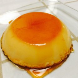 2In a small, heavy saucepan over medium-low heat, cook sugar, stirring, until golden. Pour into a 10 inch round baking dish, tilting to coat bottom and sides. Set aside.