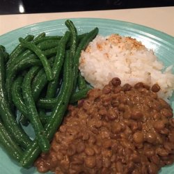 1Rinse lentils and place in a saucepan with the water. Bring to a boil, then cover, and simmer over low heat for 15 minutes. Stir in the curry paste, coconut cream and season with salt to taste. Return to a simmer, and cook for an additional 10 to 15 minutes, until tender.