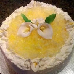 2To make the filling, mix together the sour cream and sugar in a medium sized bowl. stir in 1 1/2 cups of the coconut. reserve 1 cup of this mixture and spread the rest between the cooled cake layers. Fold whipped topping into the remaining filling, frost the outside of the cake. Sprinkle the remaining coconut over the top of the frosted cake.