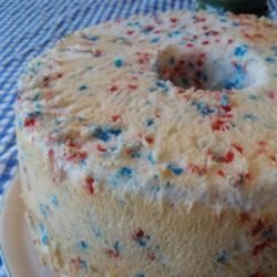"Some people like to make an angel food cake as a birthday cake. I have made this one before, and it was great. I made a butter icing, and just tinted the color I wanted. I put in those little dragees you see in the store inside the batter."