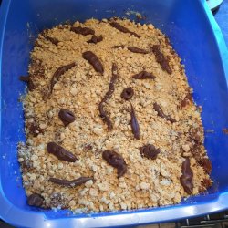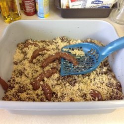 7Heat 3 or 4 of the tootsie rolls in the microwave until almost melted. Scrape them on top of the cake and sprinkle lightly with some of the green cookie crumbs. Heat the remaining tootsie rolls until pliable and shape as before. Spread all but one randomly over top of cake mixture. Sprinkle with any remaining cookie crumbs. Hang the remaining tootsie roll over side of litter box and sprinkle with a few green cookie crumbs. Serve with the pooper scooper for a gross Halloween dessert.