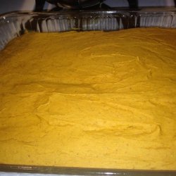 2In a large bowl, mix together the spice cake mix and canned pumpkin until well blended. Spread evenly into the prepared pan.