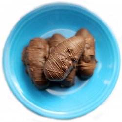 3Once the eggs have frozen, melt the chocolate and shortening in the top of a double-boiler. Dip the eggs into the chocolate until coated. Place the eggs on wax paper lined cookie sheets and return to the freezer to harden. After the chocolate has hardened the eggs can be kept in the refrigerator.
