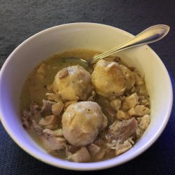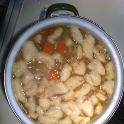 2Spread flour on a medium cutting board or other flat surface. Roll out biscuit dough and cut it into 1x2 inch pieces. Drop the pieces into the broth and cook over low heat approximately 15 minutes.