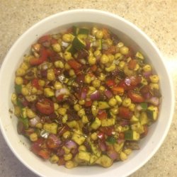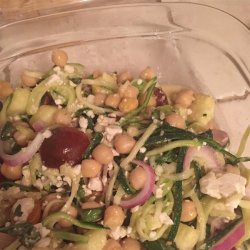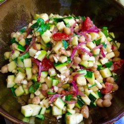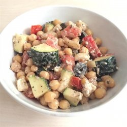 "Chopped zucchini, chickpeas, tomatoes, and fresh basil in a light balsamic dressing. Or you can use red wine vinegar! Makes a great side dish or light lunch. Not necessary, but best if chilled at least a couple hours to let flavors blend."