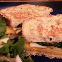 3Cook and stir spinach in the same skillet over medium heat until wilted, 2 to 3 minutes. Layer spinach on top of 2 slices of French toast; top with apple slices and Cheddar cheese. Place a piece of French toast over Cheddar cheese layer creating a sandwich.
