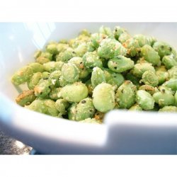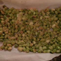 1Preheat the oven to 400 degrees F (200 degrees C). Place the edamame into a colander and rinse under cold water to thaw. Drain.