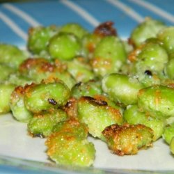 2Spread the edamame beans into the bottom of a 9x13 inch baking dish. Drizzle with olive oil. Sprinkle cheese over the top and season with salt and pepper.