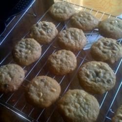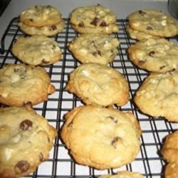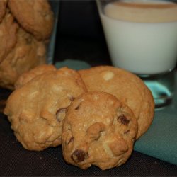 2In a medium bowl, cream together the butter, brown sugar and white sugar until smooth. Beat in the eggs one at a time then stir in the vanilla. Gradually blend in the sifted ingredients. Mix in the white chocolate and semisweet chocolate chips and macadamia nuts. Drop by rounded tablespoonfuls onto ungreased cookie sheets.