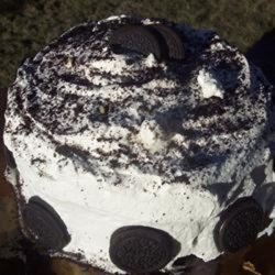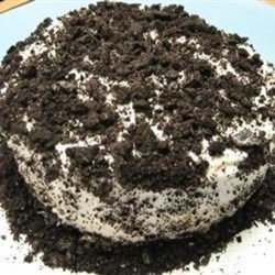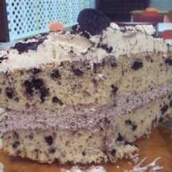 1Prepare cake mix according to package directions. Stir in the 1 cup crushed cookies and bake as directed for two 8 or 9 inch round layer pans. Let cake cool.