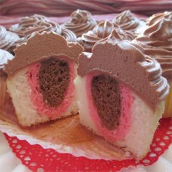 4Stir 1/4 cup chocolate syrup into the remaining batter and carefully pour this into the pan on top of the strawberry batter.