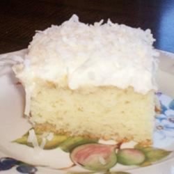 4Make the frosting while your cake cools. In a medium bowl, cream together the confectioners sugar, cream cheese and milk. Stir in the vanilla. Frost cooled cake then sprinkle with coconut.