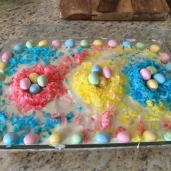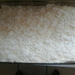 2In a medium bowl, combine the cake mix, oil, eggs, sour cream and cream of coconut. Mix until well blended. Spread evenly into the prepared pan.