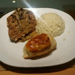Use any recipe you like for the meatloaf. Nutritional information is for a 2 1/2 pound beef, veal and pork meatloaf.