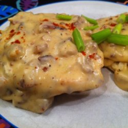 4Continue to simmer gravy until flavors have blended and gravy is thick, 10 to 15 minutes, stirring occasionally. Sprinkle with 1 tablespoon green onion and a pinch of cayenne pepper for garnish.