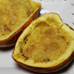 2Cut the squash in half, and remove the seeds and any excess membrane. Place cut side up in a baking dish. Cover the dish and bake for 45 minutes.