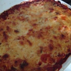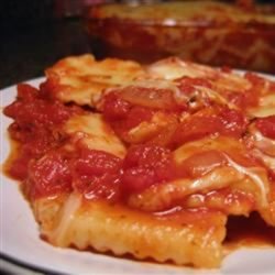 3In a 9x13 inch pan layer sauce and cooked ravioli. Top with grated Parmesan cheese and grated mozzarella cheese.