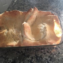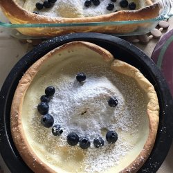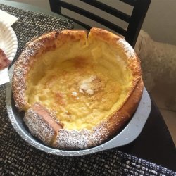 "An oven pancake that puffs up and falls. It is served with a squeeze of lemon juice and powdered sugar. We also enjoy filling the indent with fresh strawberries and whipped cream. Serves 2 to 4."