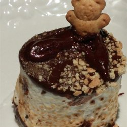 "Mini teddy bears chill out in toasted marshmallow hot tubs filled with super-easy chocolate bourbon ganache and edged in graham cracker crumbs. If these sassy s'mores don't own your party, you're not having enough fun."