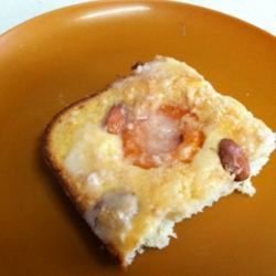 3In a small bowl, combine the 1/2 cup of reserved cake mix with the butter. stir in the butter until the mixture is crumbly. Stir in the slivered almonds, and sprinkle the mixture evenly over the Danish.