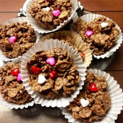 2Mix sugar, milk and butter or margarine over low heat and bring to a boil. Remove from heat and add peanut butter and vanilla until blended. Stir in remaining ingredients.