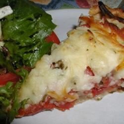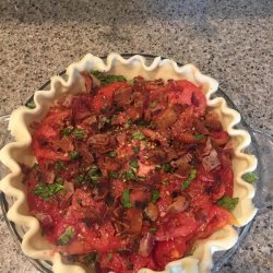 2Cover bottom of pie crust with a layer of tomato slices. In a small bowl, mix together salt, pepper, basil, and garlic powder. Sprinkle half of mixture over tomato slices. Layer remaining tomato slices in pie crust. Sprinkle with the rest of seasoning mixture. In a medium bowl, mix together mayonnaise and cheese. Spread mixture evenly over top of pie.