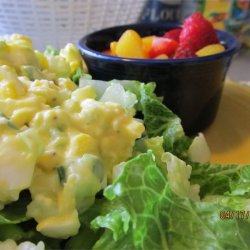 2In a medium bowl, stir together the mayonnaise, Dijon mustard, yellow mustard, lemon juice and green onions. Chop the eggs into big chunks and mix gently with the dressing. Season with salt and pepper.