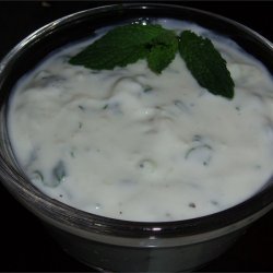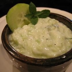 "This is a Greek yogurt sauce made with cucumbers and fresh mint. It's perfect for gyros, dipping raw vegetables, etc. Combine chopped onion with the mixture if desired. Low-fat or nonfat yogurt may be used."