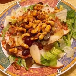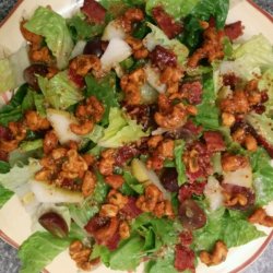 5In a large salad bowl, toss dressing with greens, pear slices, grapes, and bacon, and sprinkle with nut mixture.