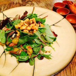 1In a large, dry skillet over medium-high heat, toast cashews until golden brown, about 5 minutes. Remove cashews to a dish to cool slightly.