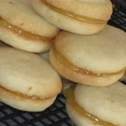 4To make the filling, combine the beaten egg, sugar, lemon zest, lemon juice and butter in the top of a double boiler. Stir until thick. Sandwich cookies with 1 teaspoon of filling.