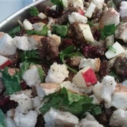 3Melt butter in the skillet; add leeks, apples, celery, and poultry seasoning. Cook, stirring frequently, for about 10 minutes. Stir in the rosemary and dried cranberries.