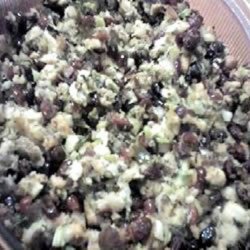 5Bake remaining stuffing in a buttered baking dish, covered, at 350 degrees F (175 degrees C) for about 45 minutes. Uncover, and bake another 15 minutes to brown top.