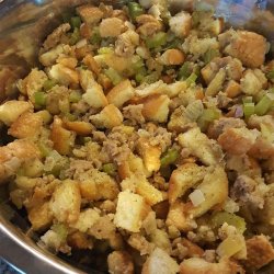 "This stuffing has lots of flavor and is nice and moist. You can also change the ingredients to your liking. I quadruple this recipe and make the extra in my electric roaster, that's how much everyone loves it. This recipe is very adaptable, you can change it around anyway you like and it will still be delicious!"