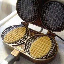 "These have been in the family forever. They last forever - they mellow like fine wine. You must have a special iron to bake them over a gas burner. It's like two hinged plates and it usually has a pretty pattern that is pressed into the cookies as they bake one by one."
