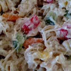 2Stir together chicken, celery, onion, and mayonnaise; fold in cold pasts, and season to taste with salt and pepper. Place in refrigerator, and let rest for at least an hour before serving.