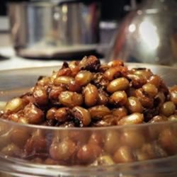 "Fun, funky and full of flavor! Think 'far out bar goodies' or your next full-fledged addiction. There's a crazy depth to the flavor and a buttery afterburn. Precooking the peas can be done a day in advance, making serving quick and easy. Enjoy!"