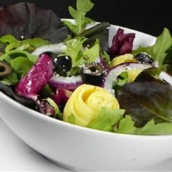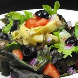 "This was given to me by a friend, who got it from a little pasta house restaurant in her hometown. It calls for mixed greens, red onion and artichokes with a vinegar and oil dressing."