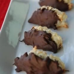2In a medium bowl, blend together the sugar and almond paste using your fingers until the paste is completely worked into the sugar. Stir in the coconut and chocolate chips. In a clean dry glass or metal bowl, Whip egg whites and cream of tartar to stiff peaks. Fold half of the egg whites into the coconut mixture to lighten the batter. Gently fold in the remaining whites, being careful not to deflate. Drop by rounded teaspoonfuls onto the prepared cookie sheets.