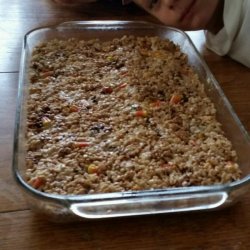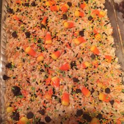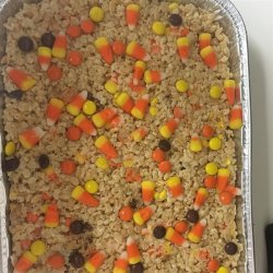 3Combine cereal, candy corn, and chocolate chips together in a large bowl. Add marshmallow mixture to cereal mixture and stir together until cereal is well coated. Spread in prepared pan. Cool to room temperature and cut into squares.