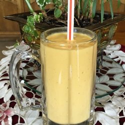 Blend mangos, banana, vanilla yogurt, and milk in a blender until smooth.